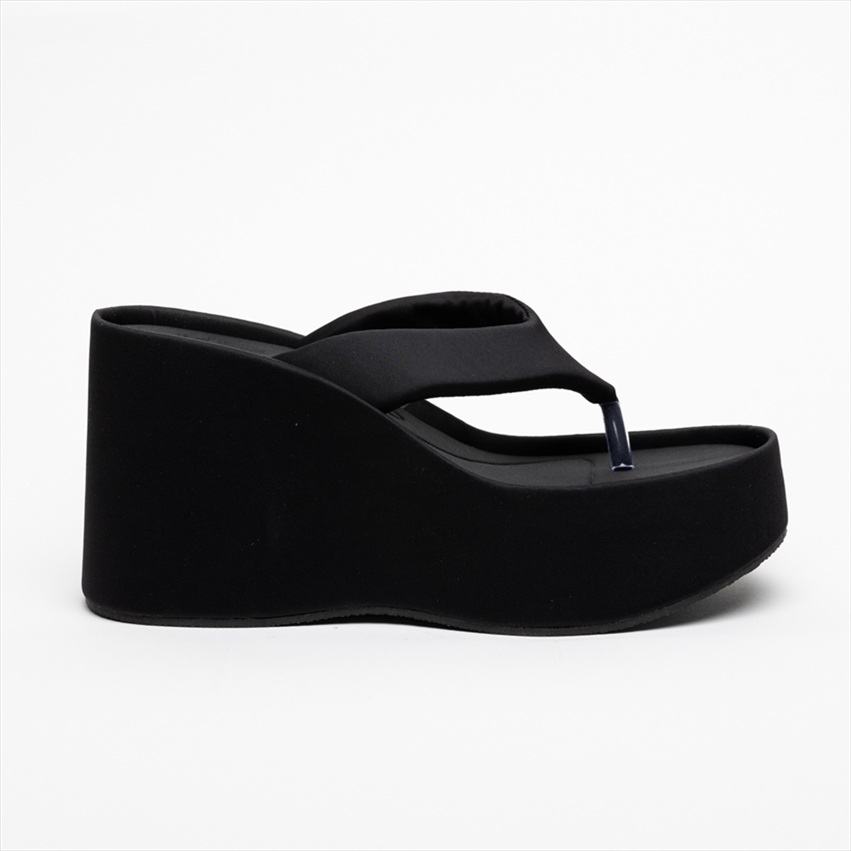 Get summer ready with these super cool platform wedge sandals. They are an absolute essential, dont miss out. Available in black silk texture and denim blue.
