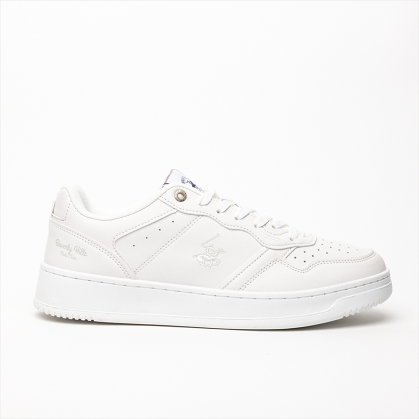 A timeless piece, the Beverly Hills Polo Club total white sneaker. Giving off the sportiest look, this sneaker is made with premium materials producing the cleanest finish. With a breathable upper in the toe piece to an adjustable lace-up format, this sneaker is tied together with its bright white stable sole, making it your go-to footwear option for a casual stroll in the city, also suitable for a day in the office or even an evening event. Available in white.