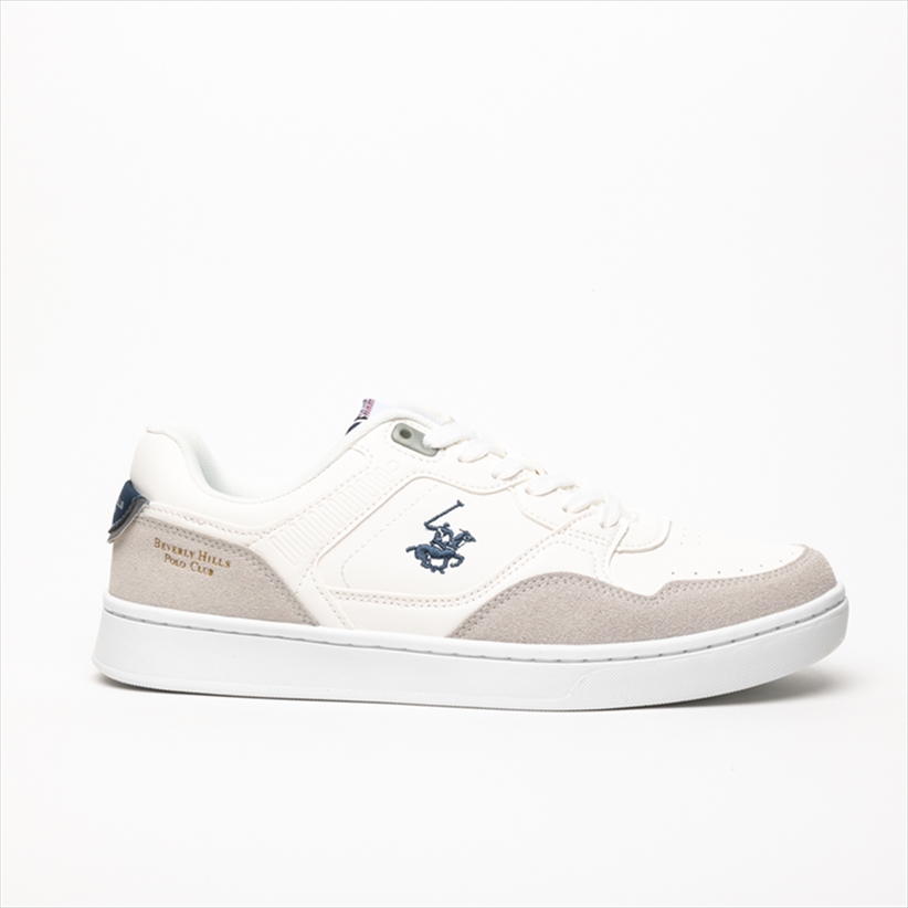 Beverly Hills Polo Club Mens White Lace-up Sneakers with Grey Suede Detailing