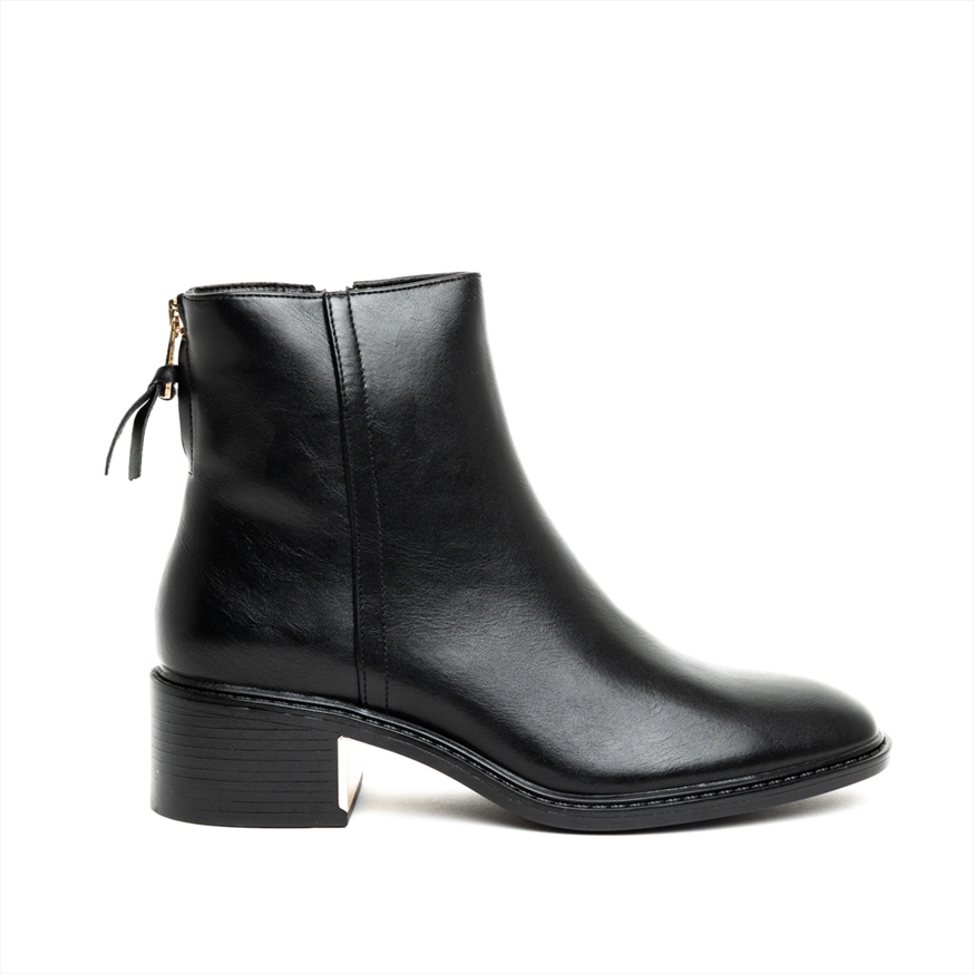 Discover the perfect blend of comfort and classic style with these women’s low heel block ankle boots. Featuring a practical 5cm block heel, these boots offer just the right lift for all-day wear without compromising on stability. Crafted from durable and sleek PU material, these boots showcase a timeless Chelsea silhouette with elastic side panels for a snug fit. The modern twist comes with a zip detail at the back, adding both style and easy access. A sturdy TPR sole ensures excellent grip and durability. Available in black.