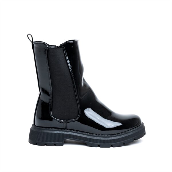 These stylish girls’ boots are the perfect mix of sparkle and comfort. Featuring eye-catching shimmery laces, a glitter heart detail on the back heel, and a chunky sole for a trendy look, they’re designed to stand out. The convenient side zip makes them easy to slip on and off, while the sturdy sole ensures lasting comfort for every step. Perfect for adding a touch of glam to everyday outfits or special occasions. Available in black.