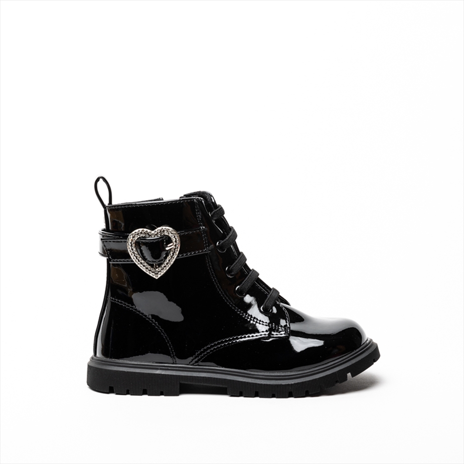 Miss Belgini girls lace up chelsea boots with embellished love heart buckle