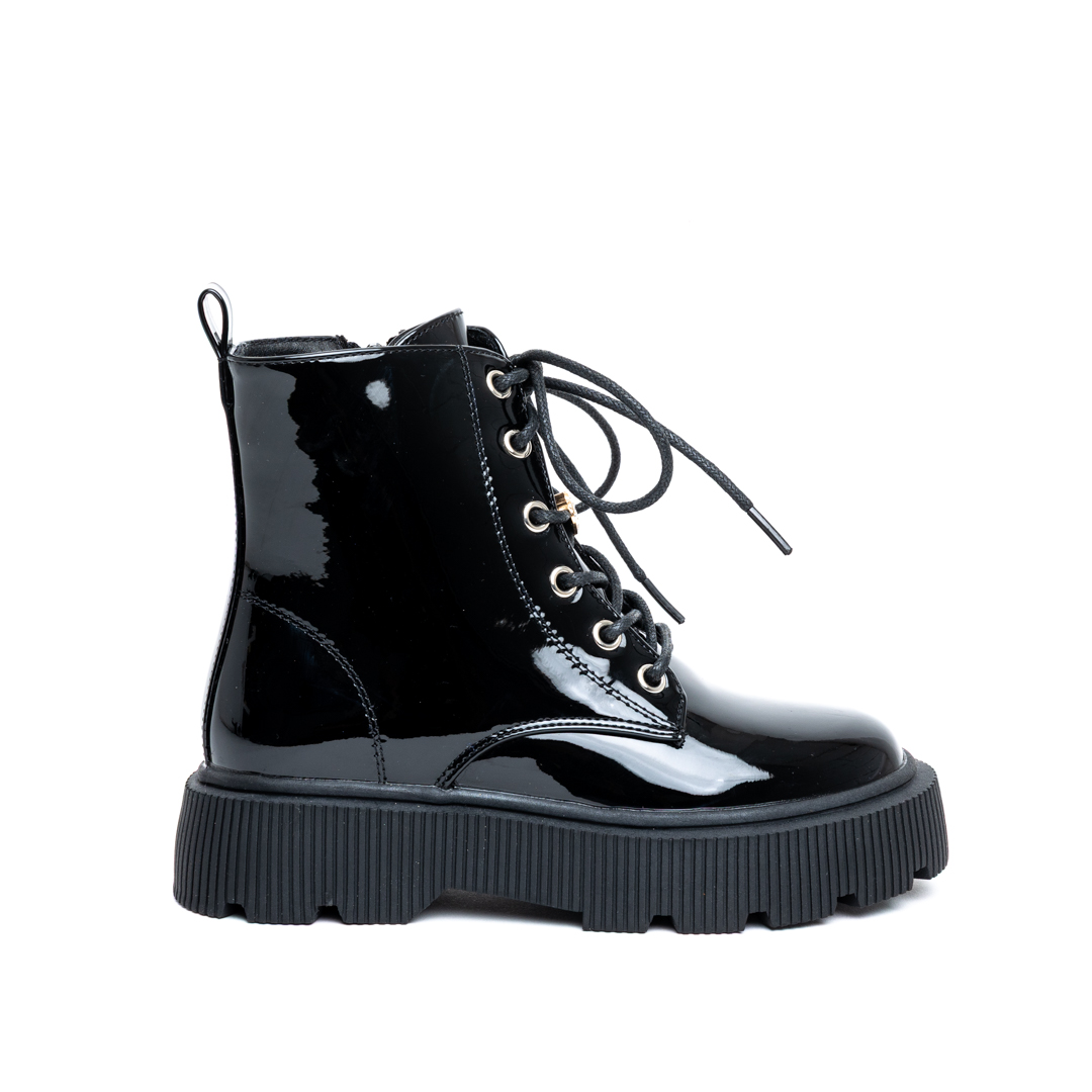 These girls’ combat-style boots combine bold design with a touch of sweetness. Featuring a classy, smooth upper and a chunky sole for a trendy look, they’re both stylish and durable. The standout heart detail in the middle of the laces adds a charming finish, making these boots perfect for little fashionistas who love mixing edgy style with girly flair. Ideal for everyday wear, special outings, or adding personality to any outfit. Available in black.
