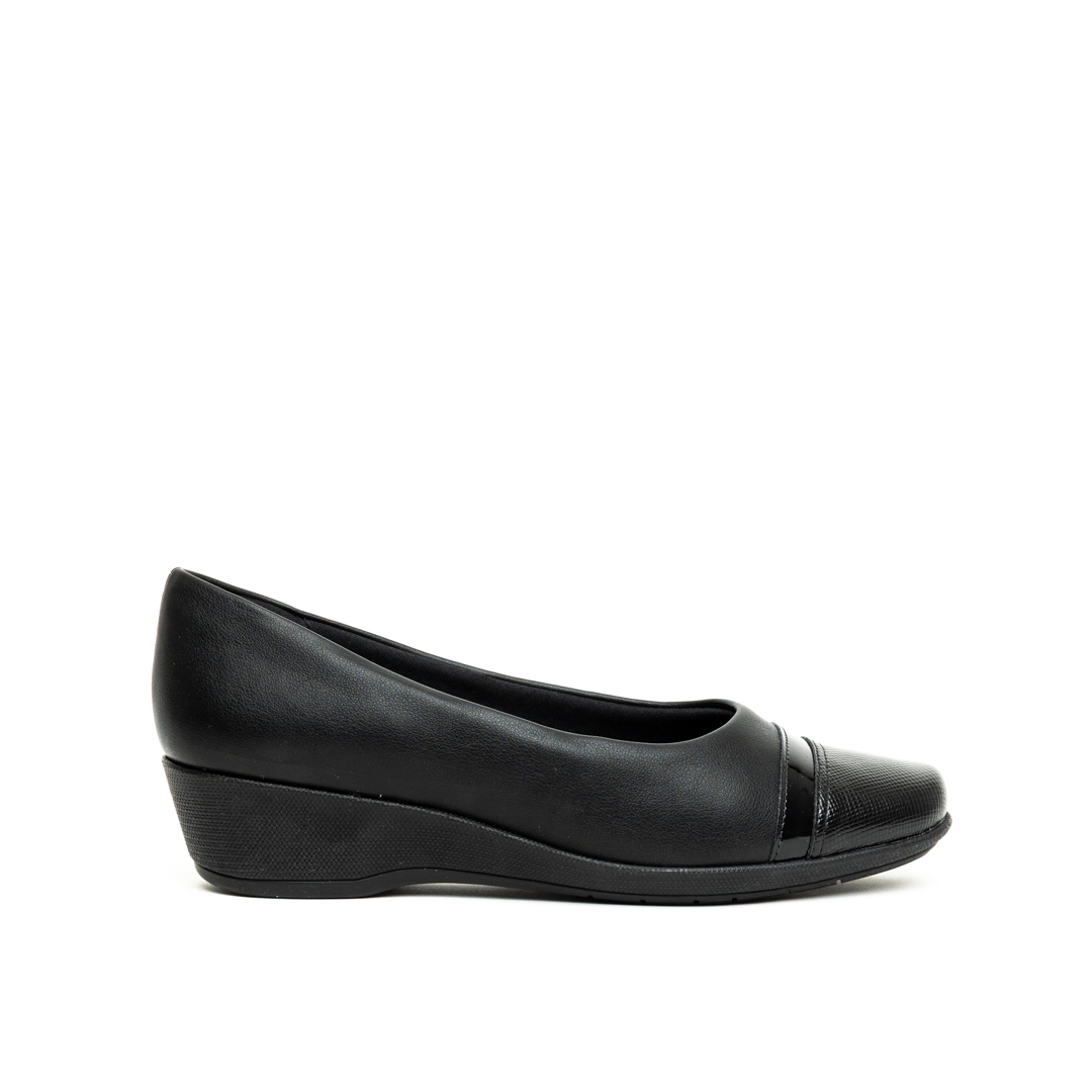 Modern and comfortable, these women square-toe low wedge pumps are designed for effortless everyday wear. The sleek silhouette is paired with a subtle wedge 4cm heel, offering just the right amount of lift while maintaining excellent stability and support. Crafted with advanced comfort technology, they provide a perfect fit, lightweight feel, and natural flexibility that moves with you. Shock-absorbing soles reduce impact with every step, while innovative materials regulate humidity and temperature to keep your feet dry and fresh all day long. Finished with a premium superset insole for superior cushioning and lasting support, these pumps combine contemporary style with all-day comfort—ideal for work, travel, or daily wear. Available in black.